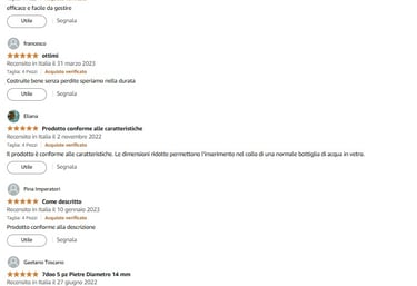 Scopri la nostra dedizione all'eccellenza e alla sicurezza dei prodotti finora venduti su Amazon. Un'esperienza di acquisto garantita dalle recensioni ricevute in tutti questi anni.
